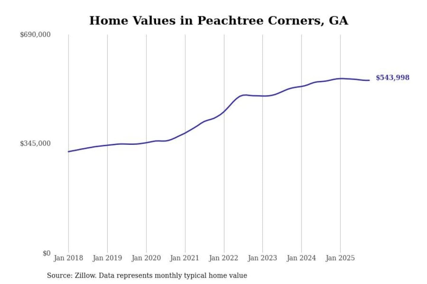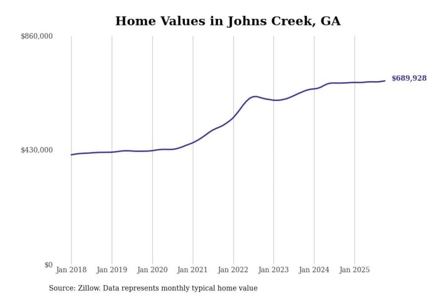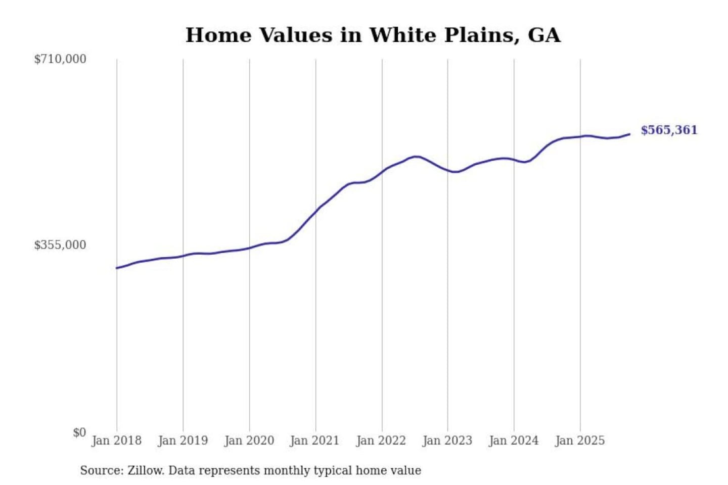 Stacker compiled a list of cities with the most expensive homes in Georgia using data from Zillow. Cities are ranked by the Zillow Home Values Index for all homes as of October 2025. The charts in this story were created automatically using Matplotlib.