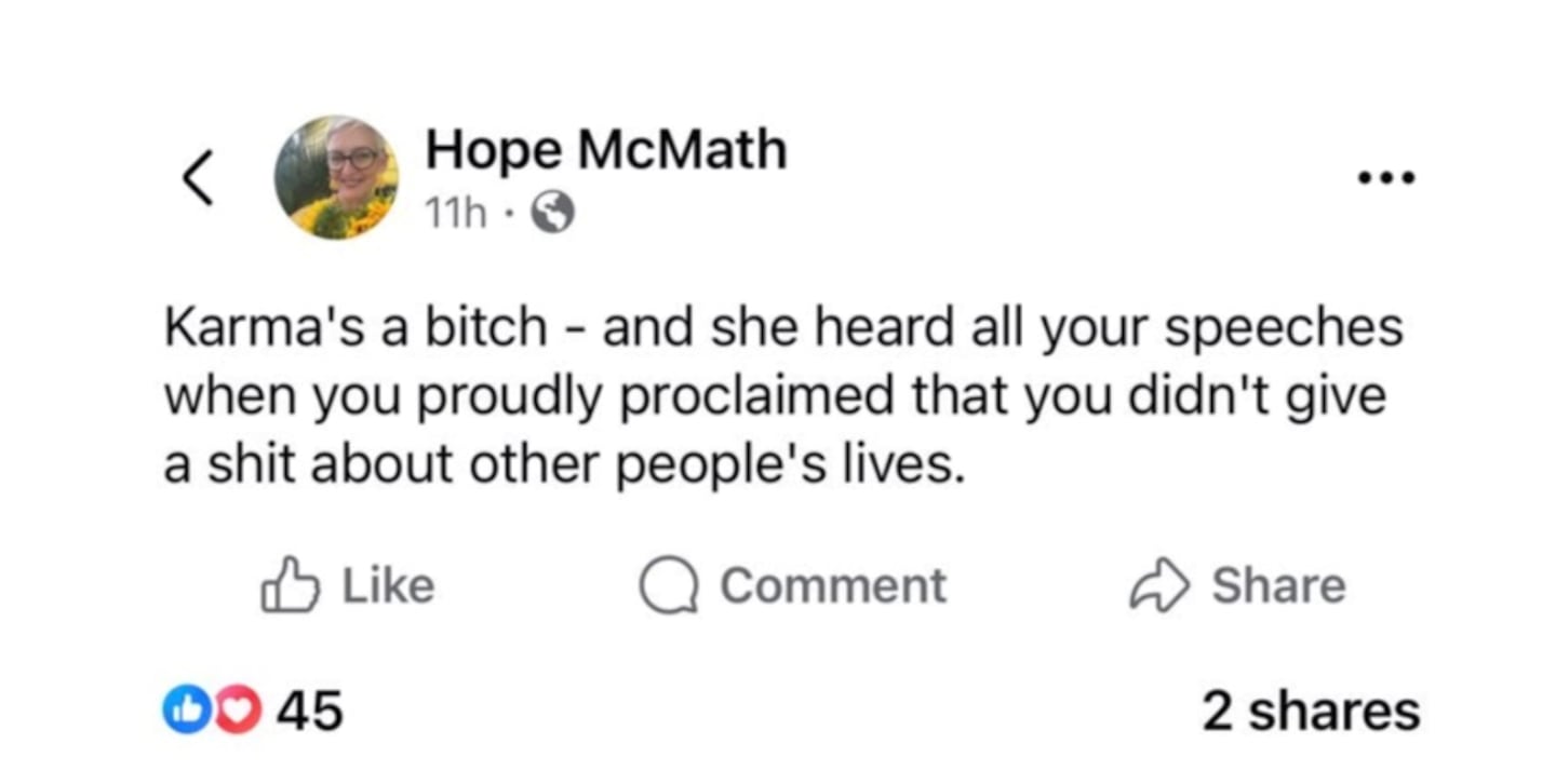 Becker obtained a deleted post from McMath’s account that read, “Karma’s a b****,” in reference to the assassination of Kirk. The post quickly drew attention and was cited in a letter sent to DCPS Superintendent Dr. Christopher Bernier, state education officials, and multiple school board members who were endorsed by Moms for Liberty.