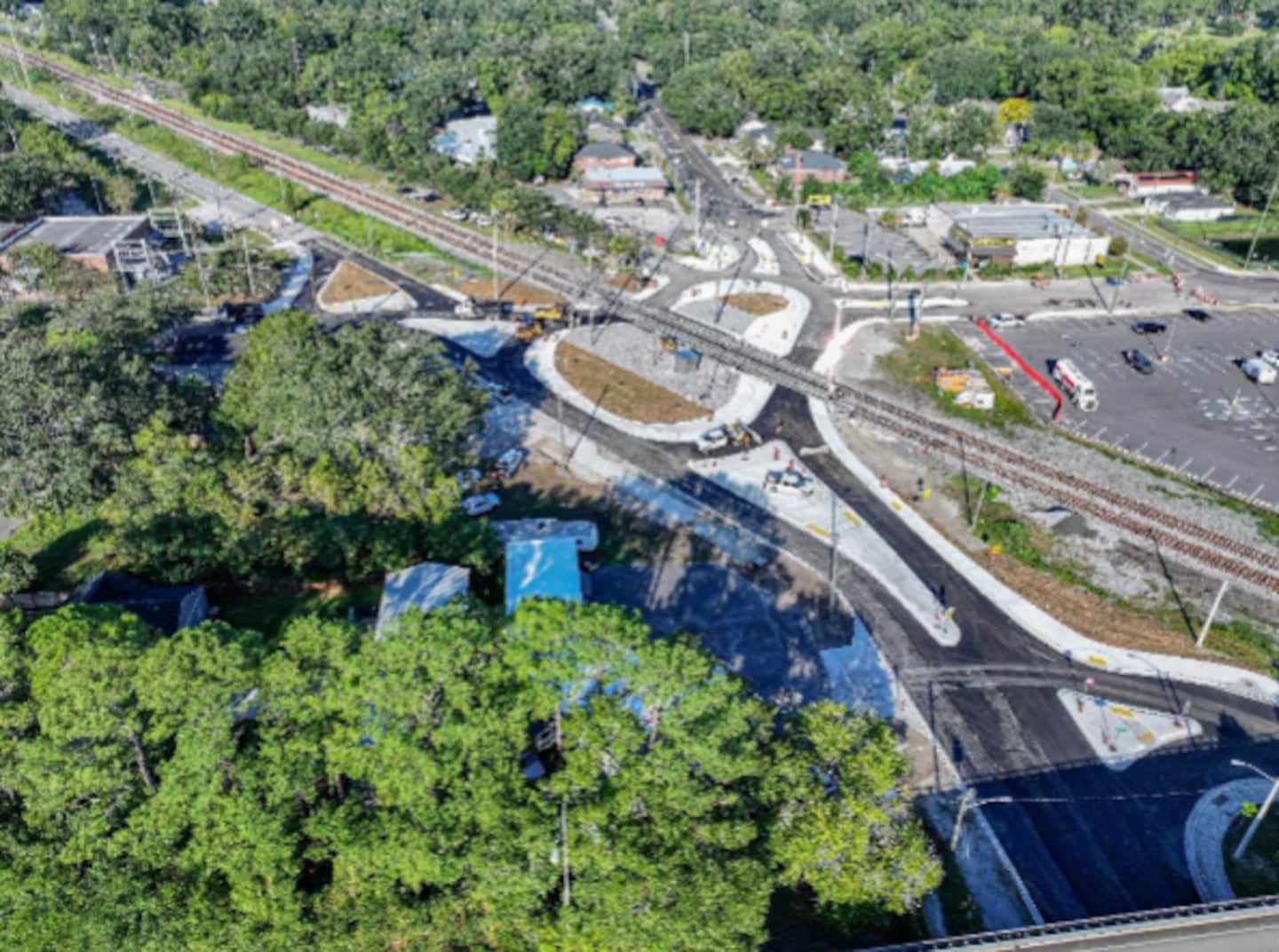 The release from FDOT says the new roundabout design is expected to reduce rail incidents by at least 78% with the addition of multiple safety enhancements. Intersection improvments include new pedestrian rail gate skirts, camera detection with audible sound devices, updated signage, lighting upgrades and removal of all traffic signals, creating a free-flow intersection with higher visibility.