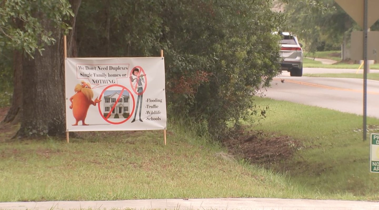 JACKSONVILLE, Fla. — Neighbors in Jacksonville’s Oceanway community are rallying against a proposed housing development, arguing that narrow roads can’t handle the traffic and that hundreds of residents have already signed a petition to fight back. The plan calls for dozens of duplexes and townhomes packed into less than 10 acres.