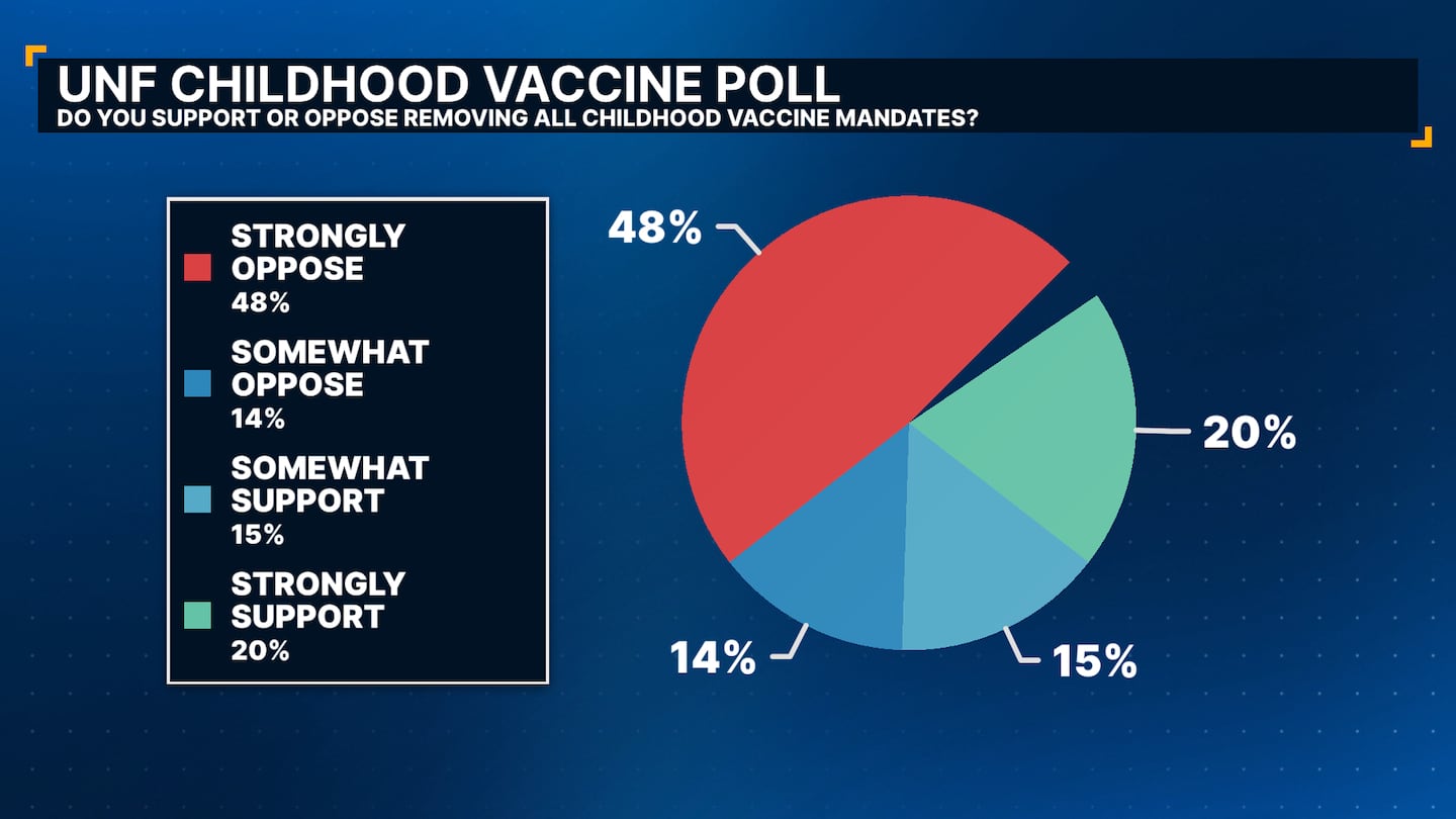 In that poll from the public opinion research lab at UNF, likely voters were asked if they support or oppose the state of Florida removing all childhood vaccination mandates.
