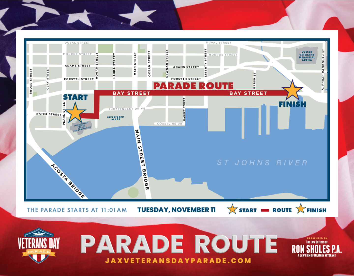 Jacksonville, FL — Jacksonville’s proud military service record is on full display every Veterans Day with the largest parade in Florida and a meaningful tribute to those who have served.