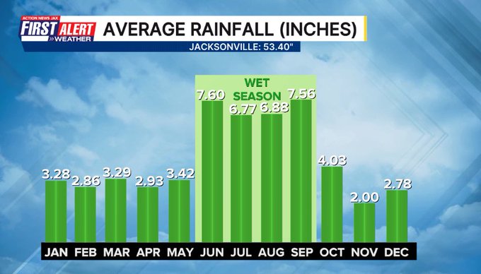 The dry season is upon us & how! As of Monday, Nov. 24th - Jacksonville has officially had 28 straight days without *any* rain. If we go through all of Nov. without at least a trace of rain, it will be only the second time in Jacksonville history since 1871. The last time was October, 2010. A couple of the longest dry stretches in Jacksonville during overlapping months includes 32 straight days in 2014 from Oct. 16-Nov. 16 & 34 straight days in 2010 from Sept. 30-Nov. 2.